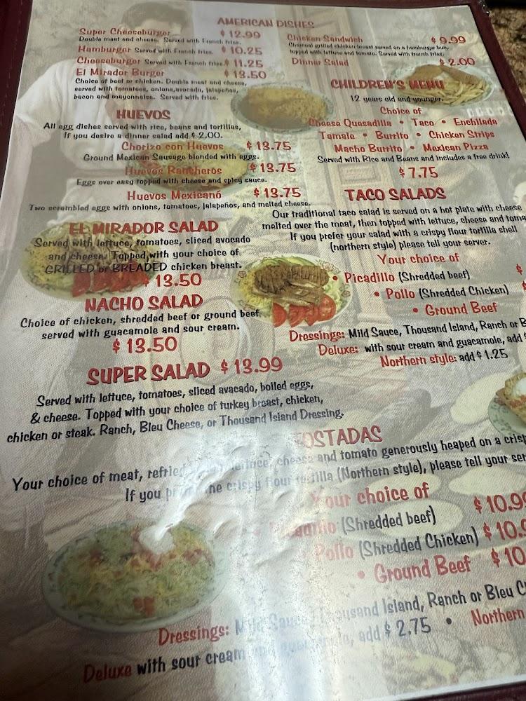 El Mirador's menu features over 100 items, showcasing a variety of Mexican delights. Appetizers like quesadillas and Mexican pizza complement heartier choices like the carne asada or pollo a la crema. Each dish bursts with flavor, reflecting home-style cooking at its finest.