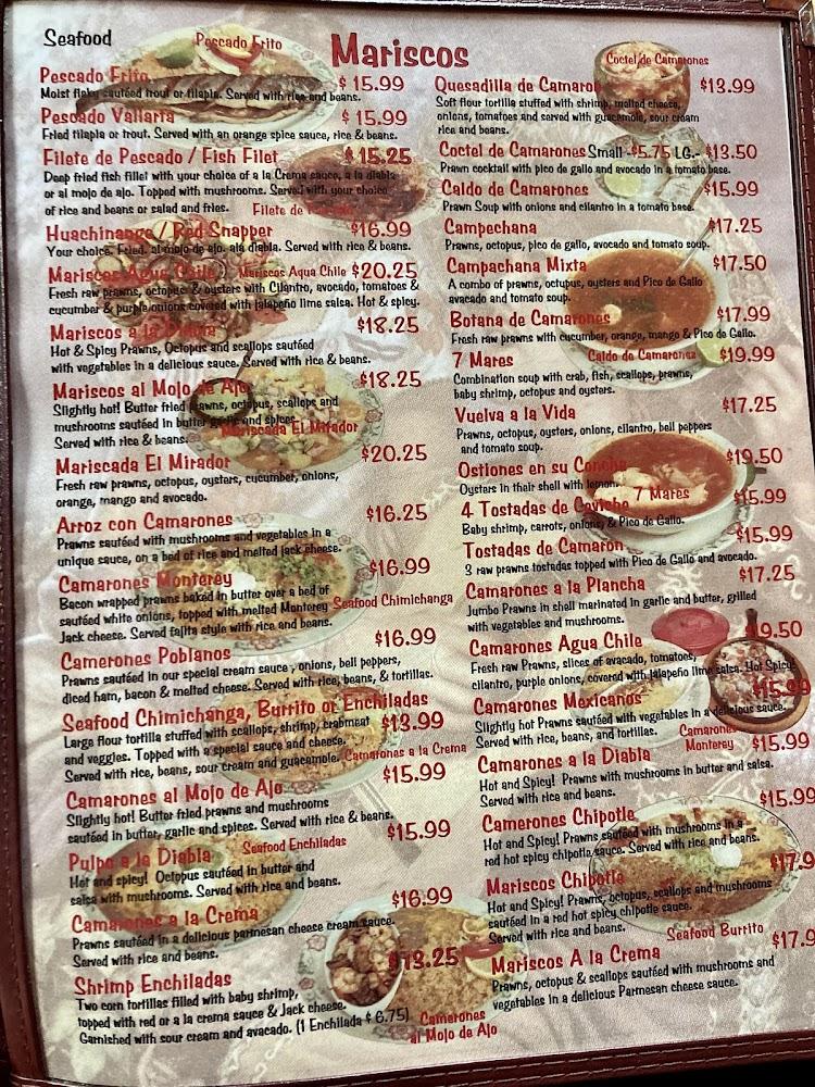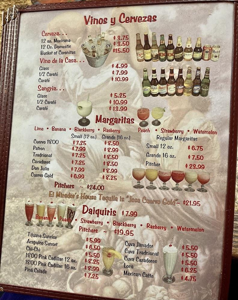 The drink menu rounds off a delightful meal experience with refreshing aguas frescas or specialty cocktails. El Mirador surely knows how to blend authenticity with creativity, ensuring every guest leaves satisfied.